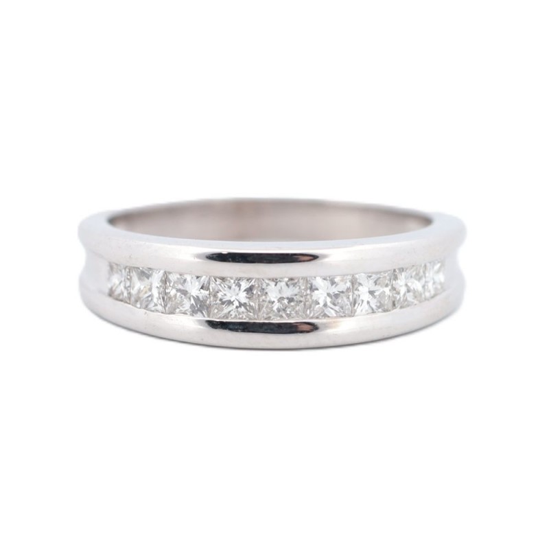Alliance en or blanc sertie sur rail de 9 diamants taille princesse pour un poids total de 0.30 carat environ. (mise à taille possible)