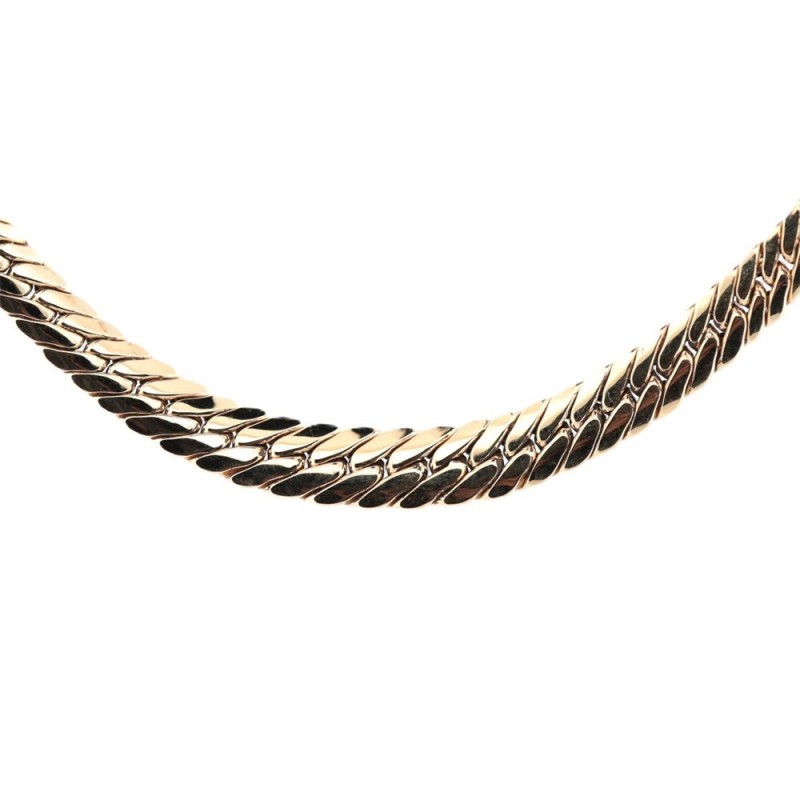 Collier en or jaune, maille anglaise en chute, fermoir mousqueton. Valeur neuve estimée : 3545 €