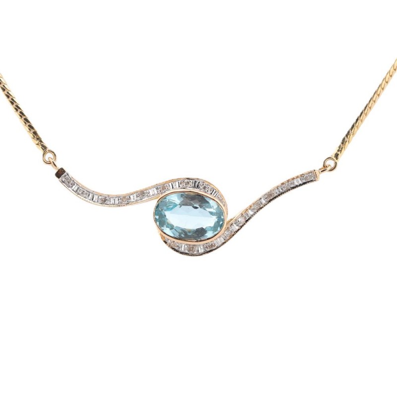 Collier Or Jaune Pierre Fine et Diamant topaze bleue