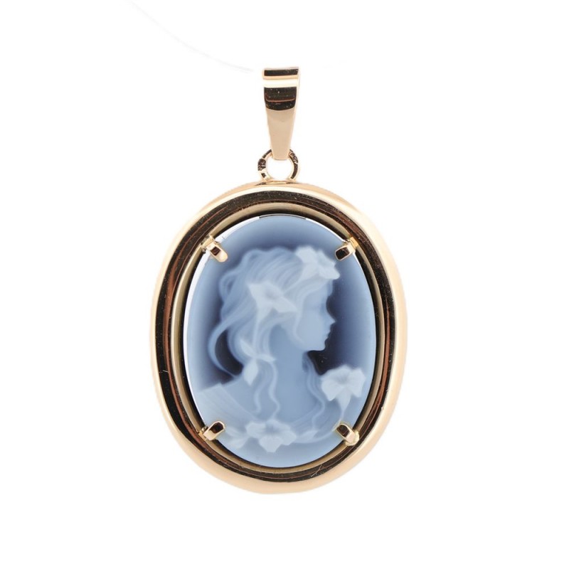 Pendentif Or Jaune serti d'un camée en agate bleue